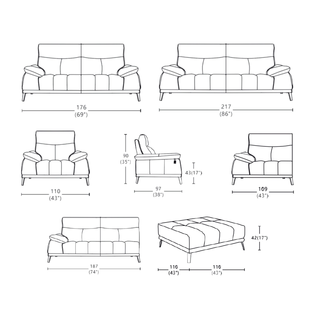 The adjustable headrests and deep seating provide unmatched comfort, making it ideal for both relaxation and conversation. Supported by sleek black metal legs, HIMOLA adds a bold contemporary statement to any living space.