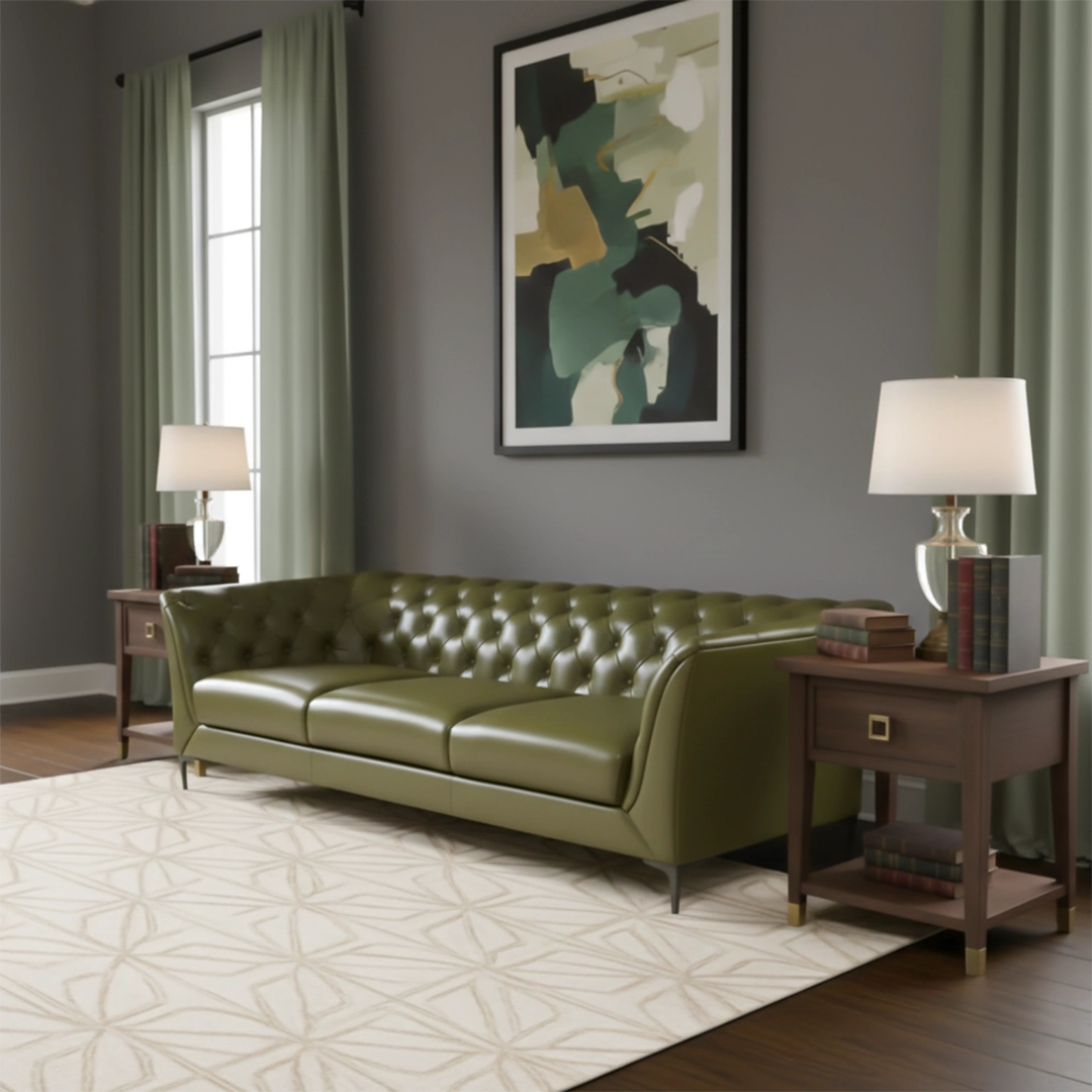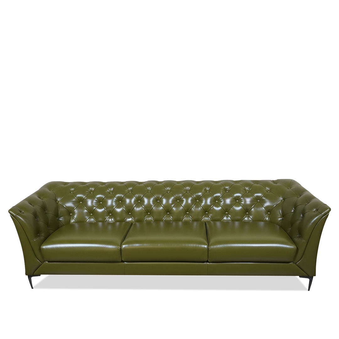 The KINGSTON sofa from Vinyork is a timeless statement piece, blending classic tufted craftsmanship with modern comfort. Upholstered in premium genuine leather, it features deep diamond tufting, contoured arms, and plush seating that elevate any interior with sophistication and warmth.