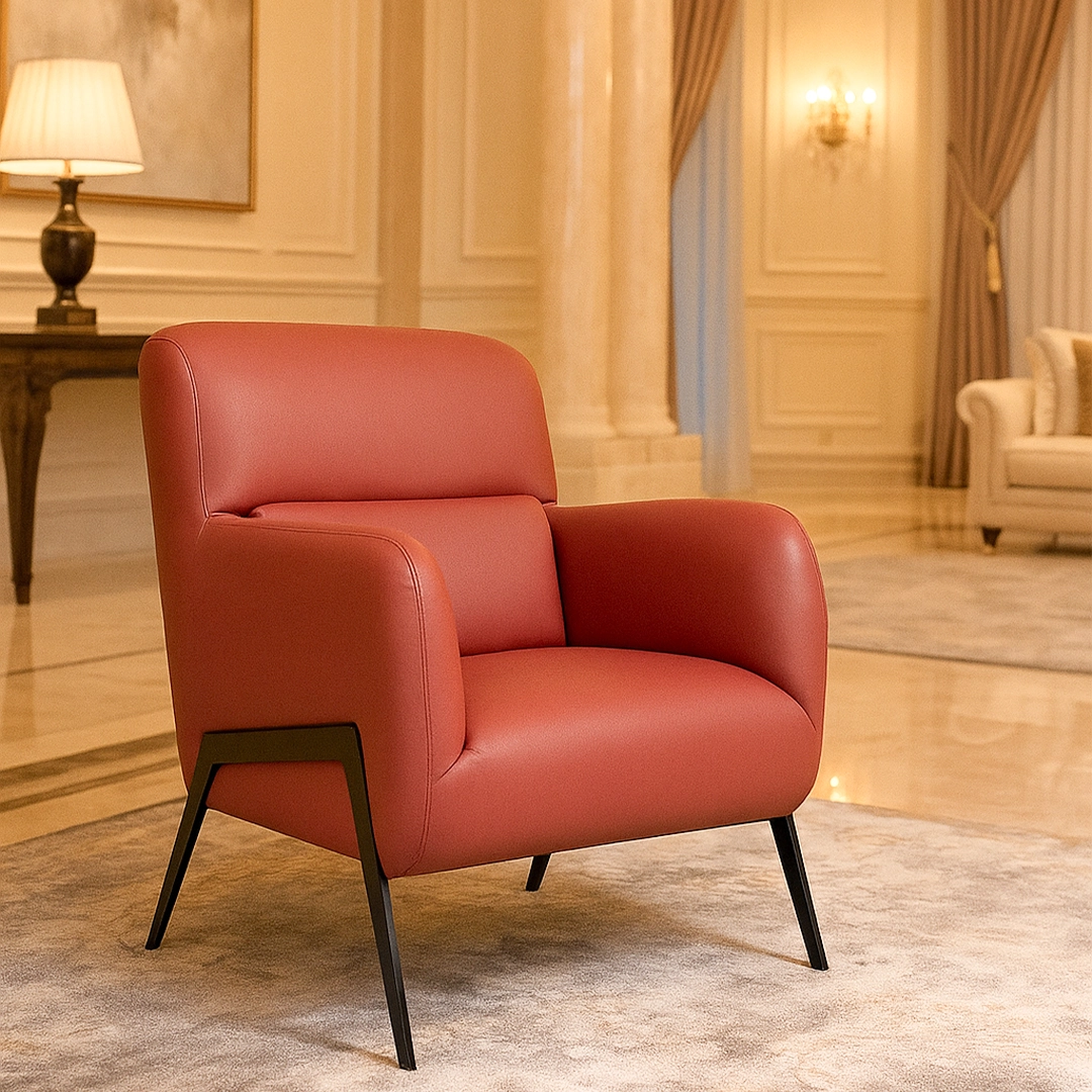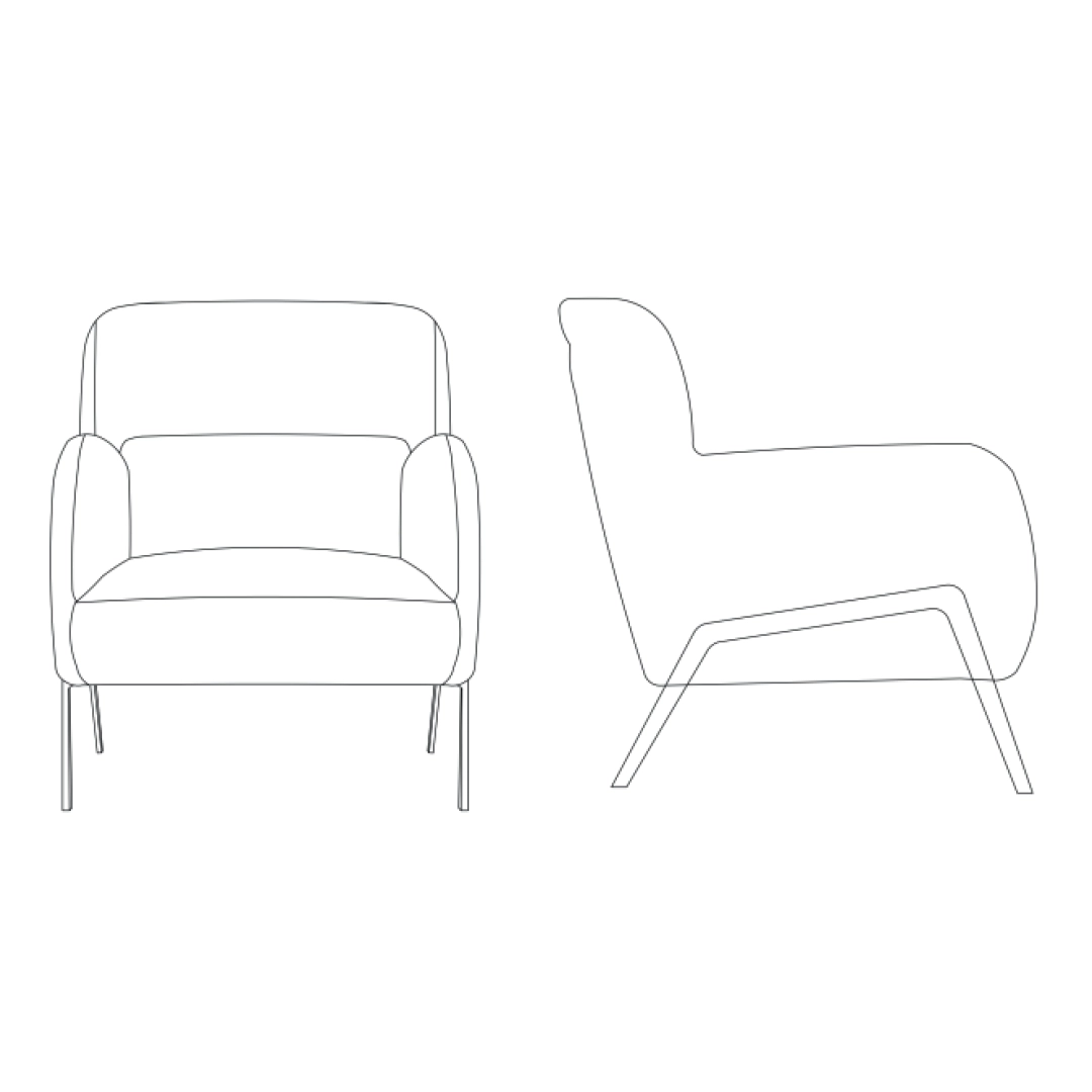 The MIRANDA armchair celebrates refined minimalism with its sculpted form and slender profile. Crafted for modern interiors, it combines soft cushioning with a sleek metal frame, creating a perfect balance of comfort and visual lightness.