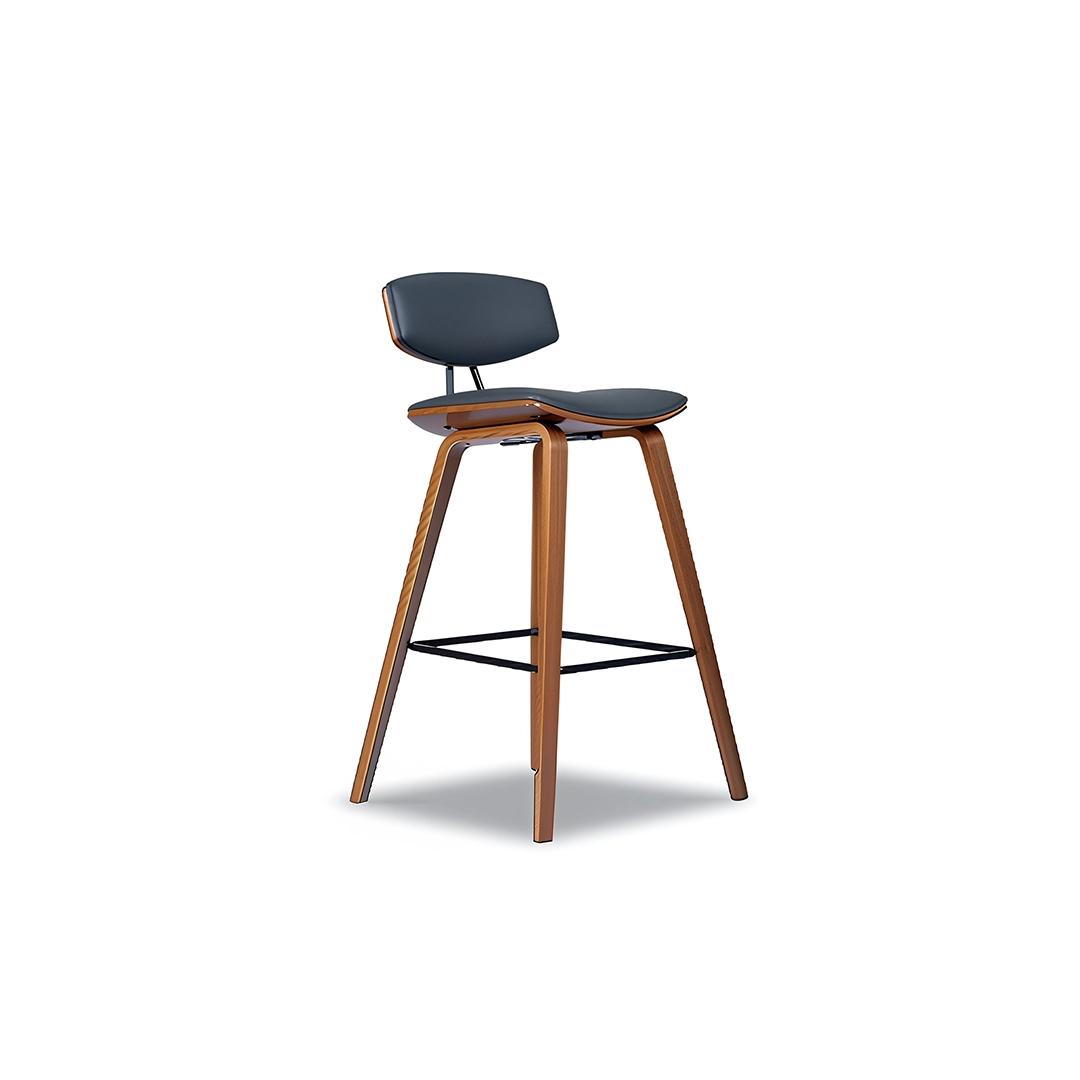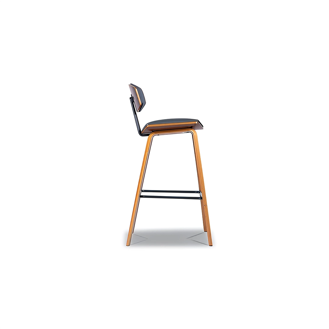The VISTA bar stool blends sculptural simplicity with ergonomic comfort. Its gently curved seat and supportive backrest create a balanced form that feels both light and grounded. The combination of warm wooden legs and sleek metal accents lends a modern industrial charm, ideal for both residential bars and contemporary hospitality settings.